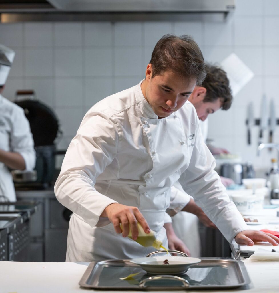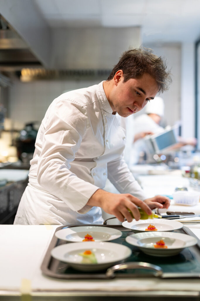 À l’orée de sa trentaine et fort de quatorze années d’expérience, Andrea Capasso insuffle au Clarence une énergie à la fois sereine et vibrante. Présent au Clarence depuis sept ans, il en incarne aujourd’hui la continuité et l’élan. Sa cuisine dépasse la seule maîtrise technique : elle se ressent. Le geste, répété et affiné, devenu signature silencieuse, conduit le goût à l’essentiel ; les saveurs s’accordent dans une harmonie subtile, la tension éveille, la gourmandise trouve sa mesure.