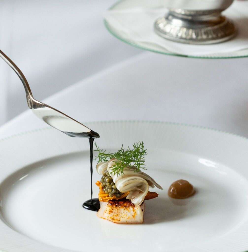Pensée comme une partition enveloppante et électrisante, en séquences, son écriture culinaire explore l’essence des produits soigneusement choisis, travaillés avec précision, puis sublimés pour en offrir une écriture multiple, parfois inattendue, toujours lisible. Un fil conducteur de délicatesse enrobée et d’acidité fine prolonge chaque bouchée, tandis que les accords terre-mer, chers au Clarence, y trouvent un relief nouveau. Andrea Capasso cuisine pour restaurer par l’émotion : une approche sincère qui laisse l’envie d’y revenir.